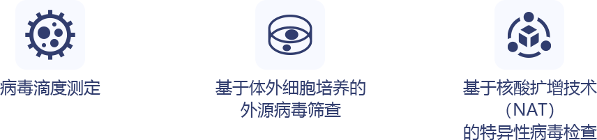 生物制品的病毒污染检查可分为检测未知病毒的广泛性筛查和针对特定病毒的检查。广测将根据客户需求,按照人用药物注册技术要求国际协调会(ICH) Q5A、中国药典(ChP)生物制品病毒安全性控制通则、美国药典(USP)、欧洲药典(EP)的相关标准进行内外源病毒污染检查。我们的测试项目包括: